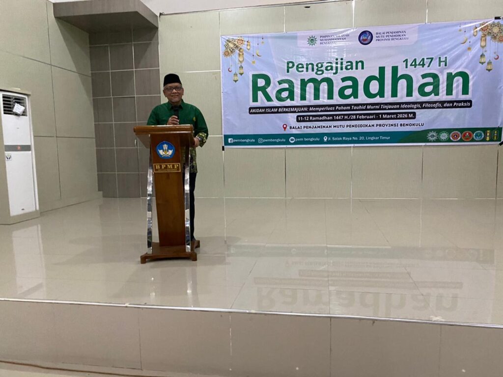 BENGKULU, PWM-BKL – Ketua Pimpinan Wilayah Muhammadiyah (PWM) Bengkulu resmi membuka rangkaian Pengajian Ramadhan 1447 H pada Sabtu (28/2/2026). Bertempat di Aula Balai Penjaminan Mutu Pendidikan (BPMP) Provinsi Bengkulu, acara tahun ini mengusung tema visioner: “Akidah Islam Berkemajuan: Memperluas Paham Tauhid Murni Tinjauan Ideologis, Filosofis, dan Praksis.”